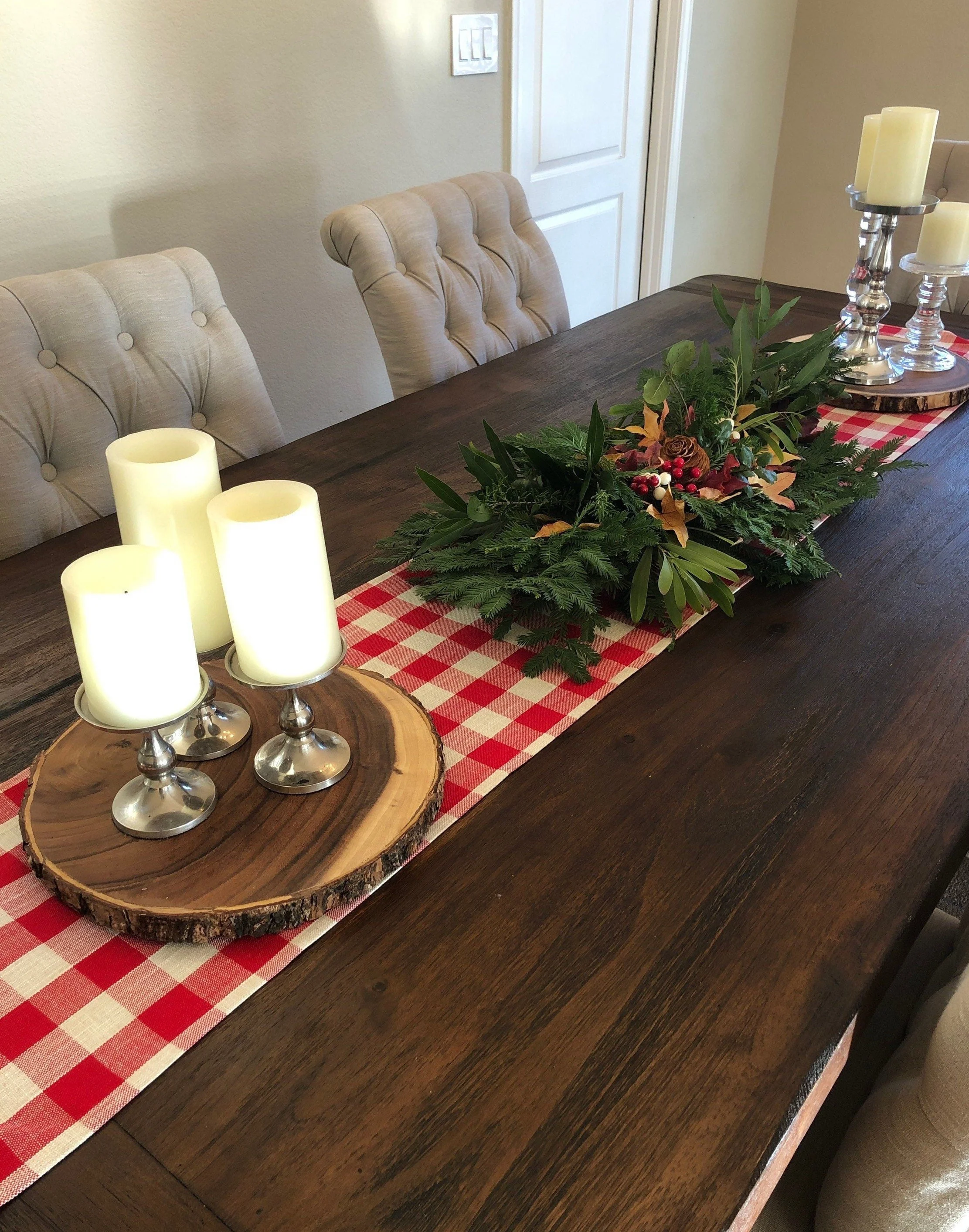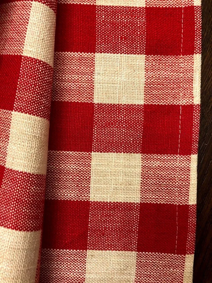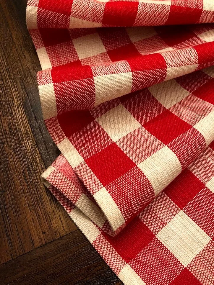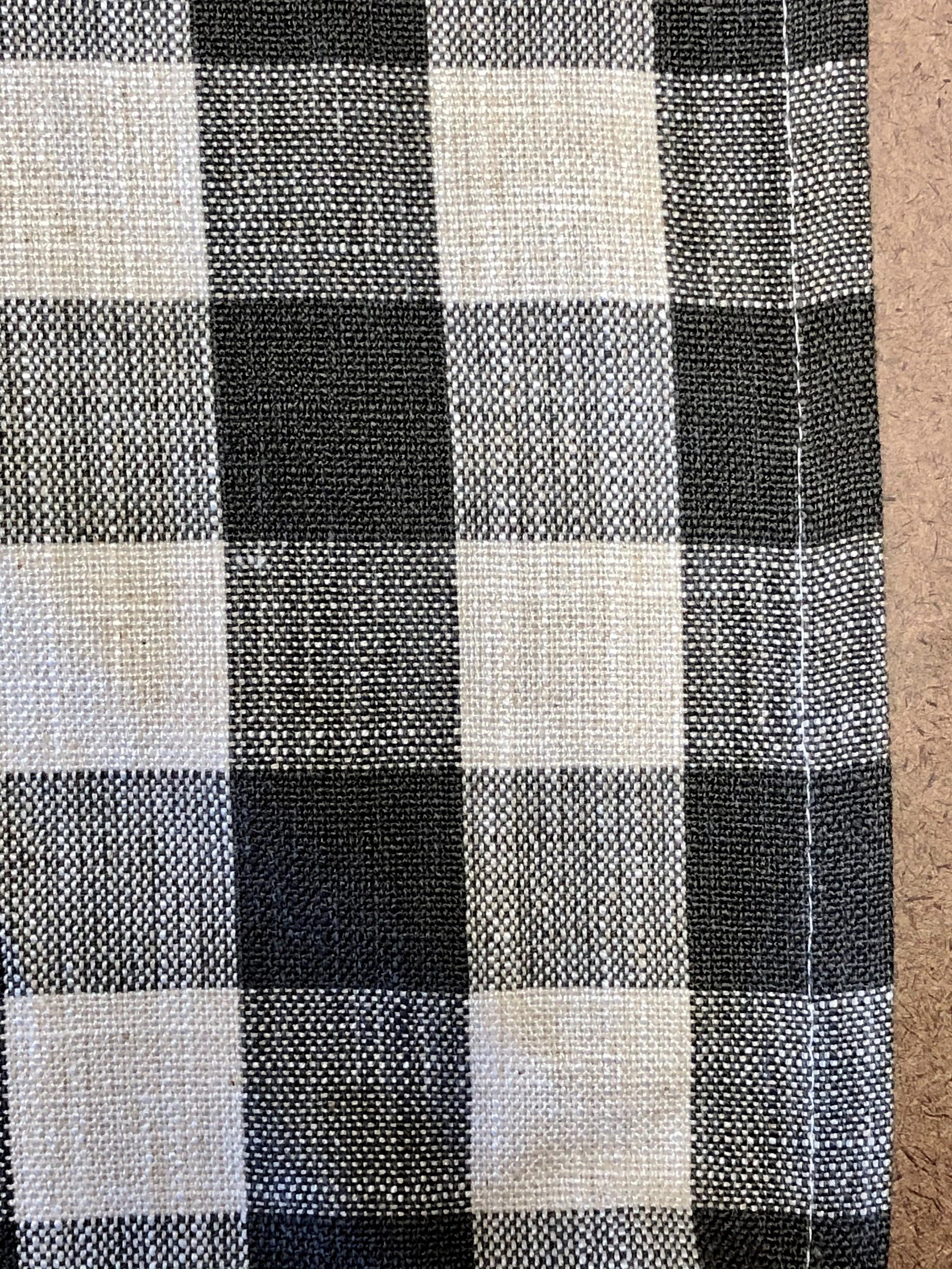 A classic country linen and cotton blend buffalo check table runner, a perfect way to dress up the table for the holiday season. This linen has a crisp feel and a nice chunky weave a great fit for a farmhouse.
